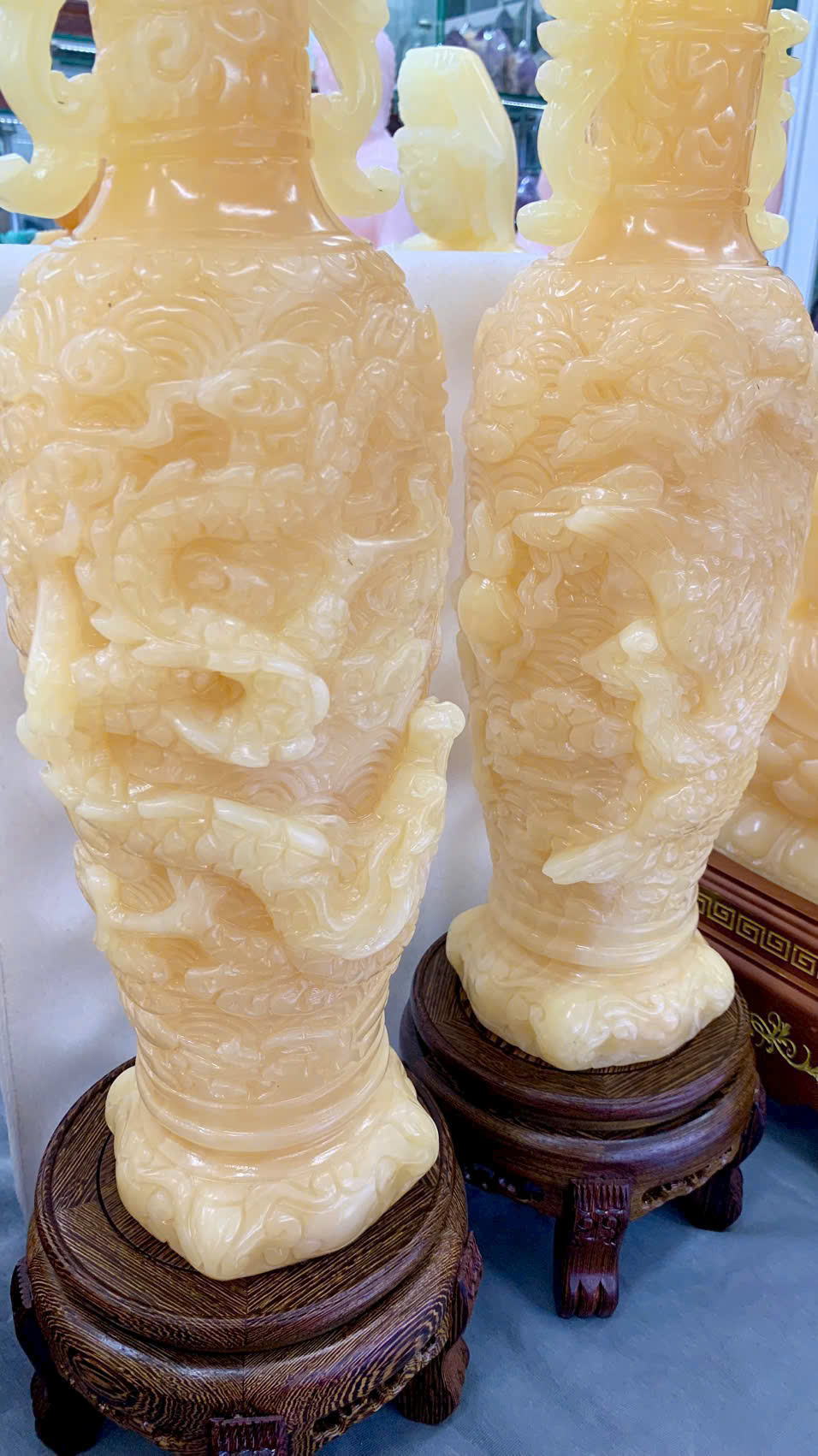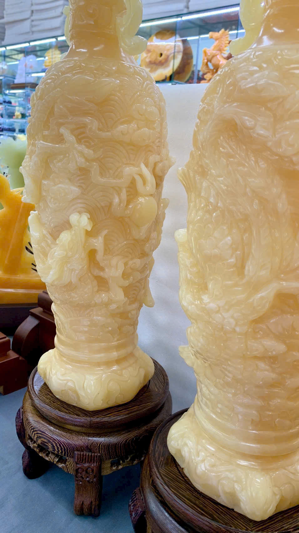 Cặp Lục bình chạm Rồng Phượng Ngọc Hoàng Long ( KT: 15*15*45cm )