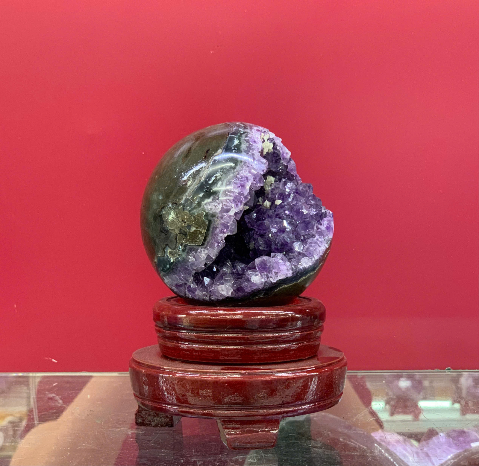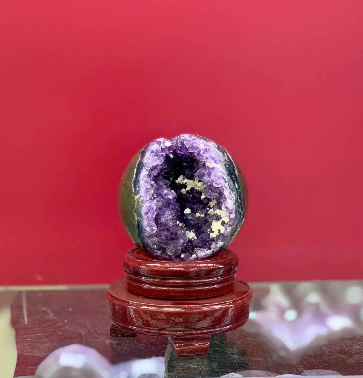 - Chất lượng: Thạch anh tím tự nhiên, tím đậm, sáng bóng, ít tạp chất