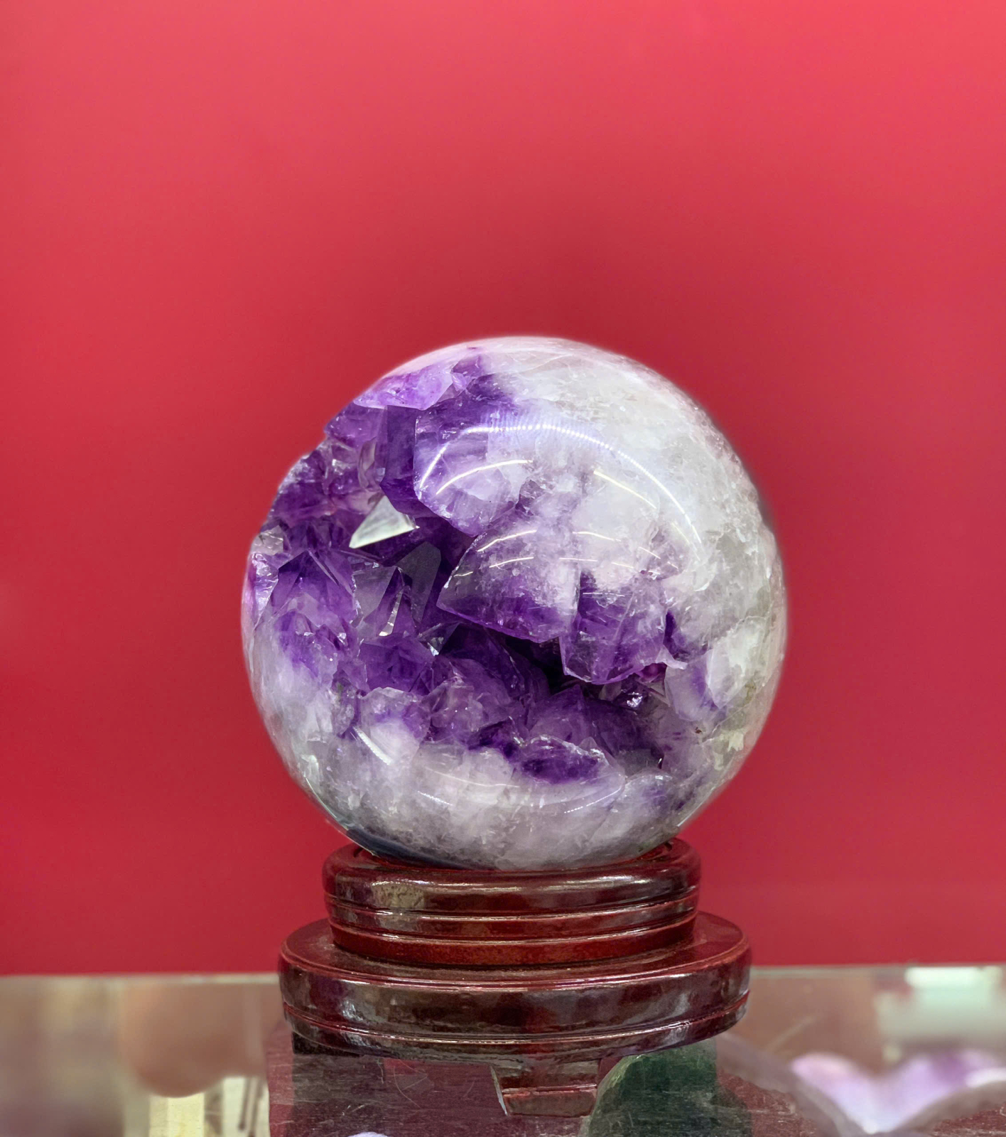 - Chất lượng: Thạch anh tím tự nhiên, tím đậm, sáng bóng, ít tạp chất