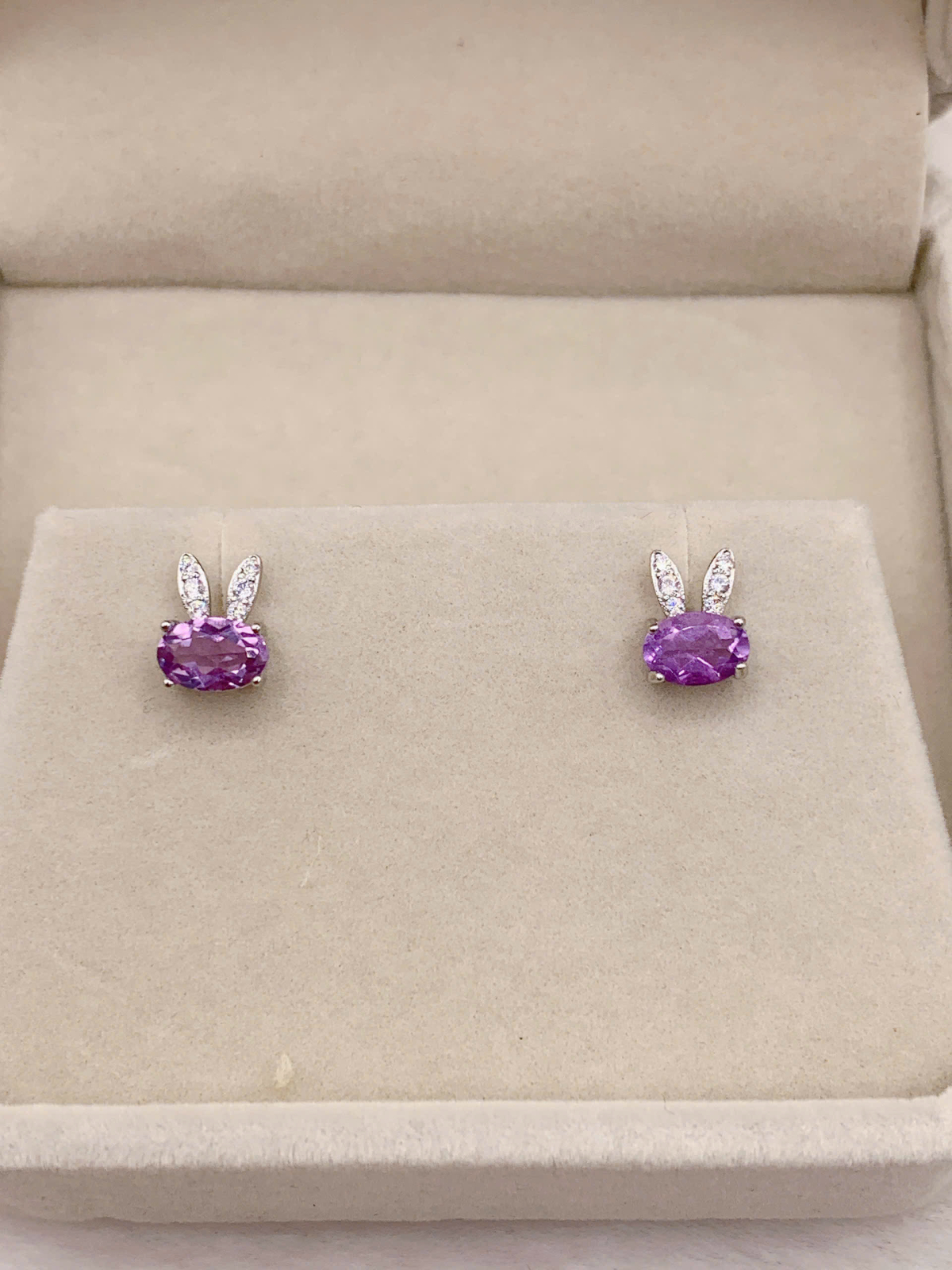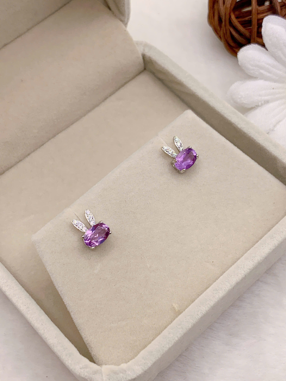 Hoa Tai Đá Amethyst 4*6mm Bạc 925 - PA027