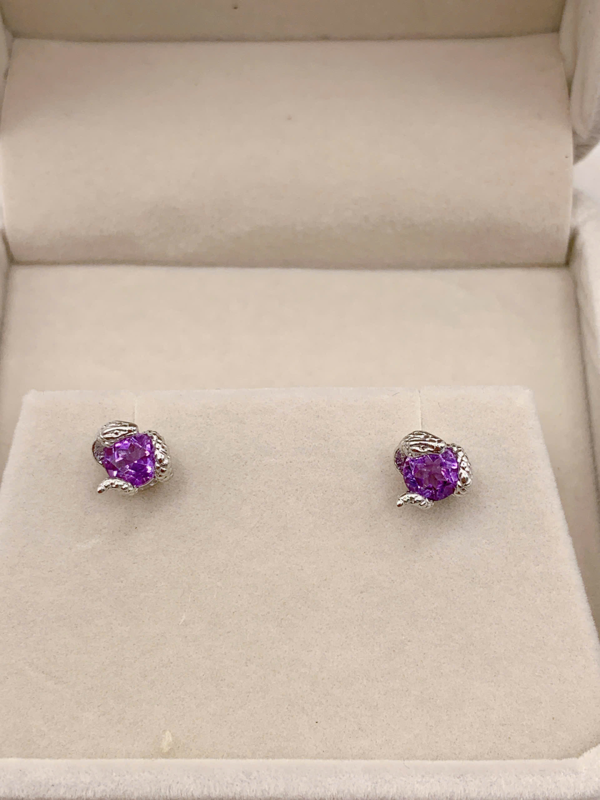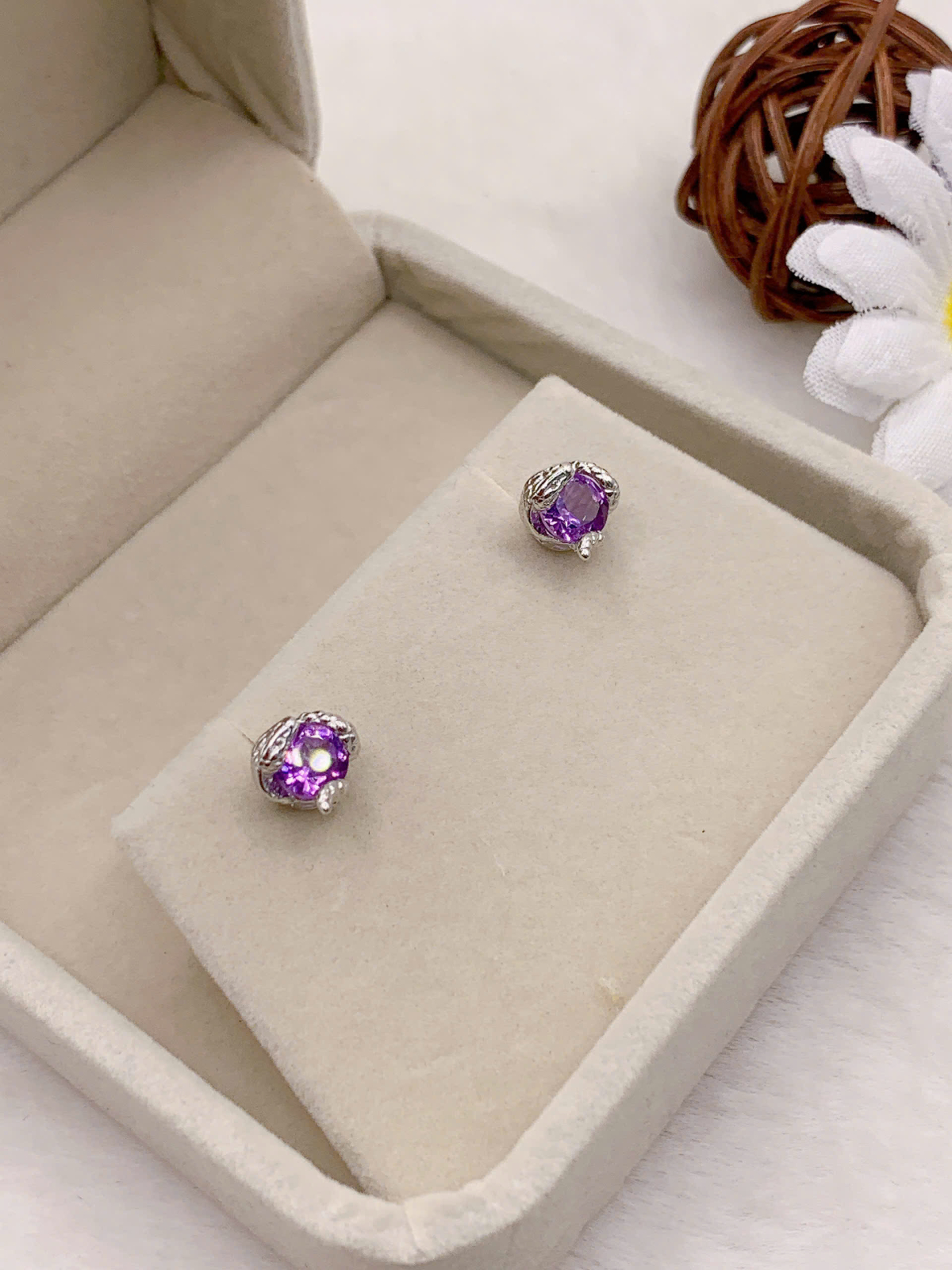 Hoa Tai Đá Amethyst 5mm Bạc 925 - PA028