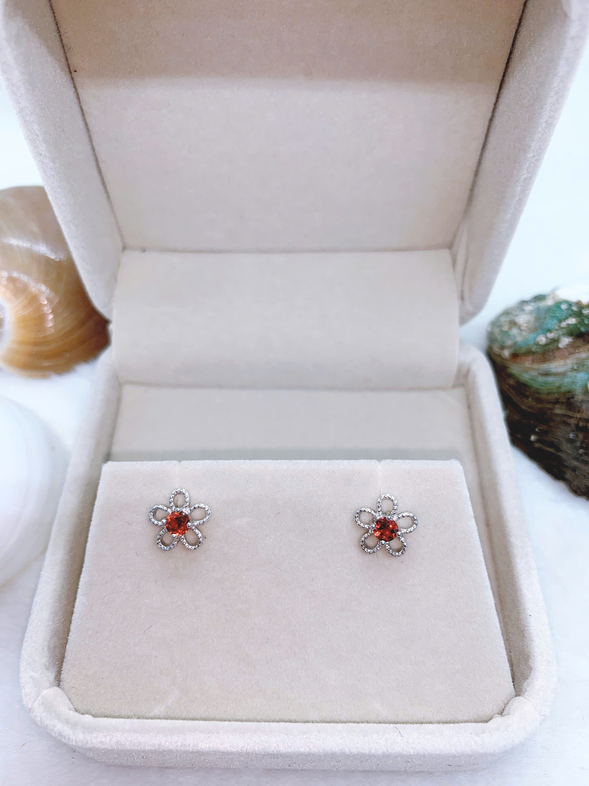 - Loại trang sức: hoa tai bạc gắn đá Garnet