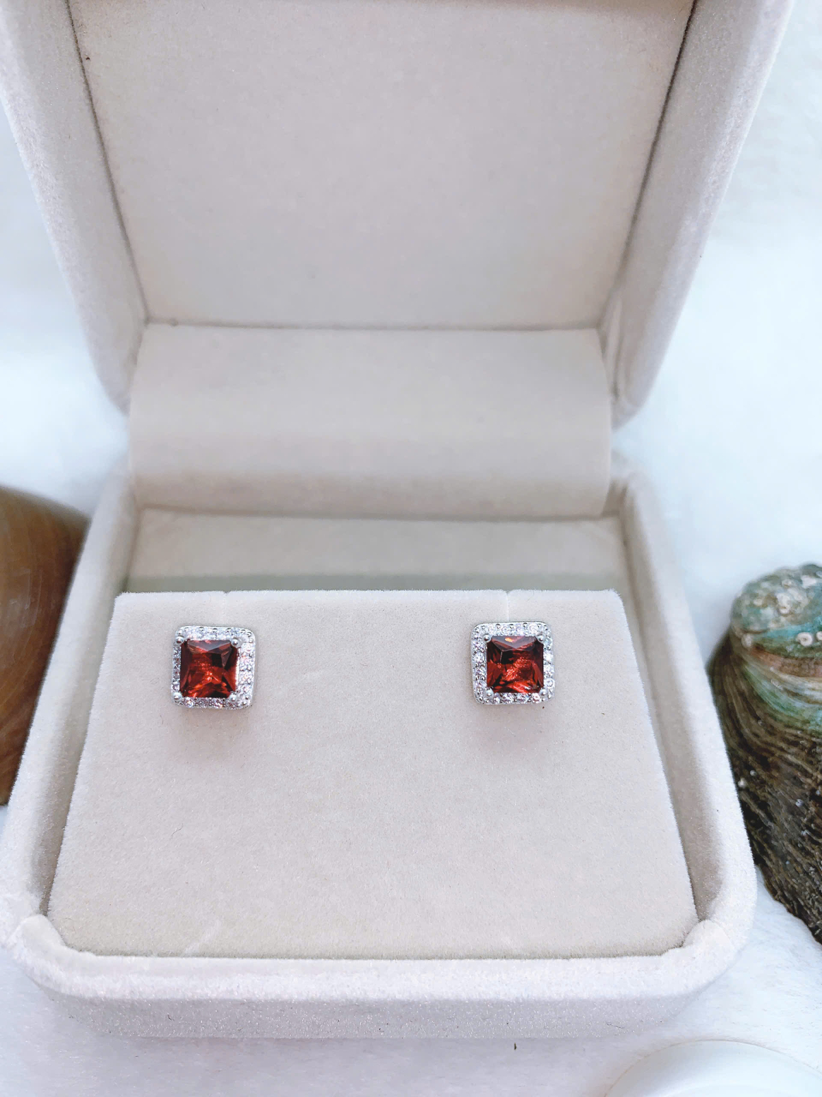 Hoa Tai Đá Garnet Bạc 925 - EGN91