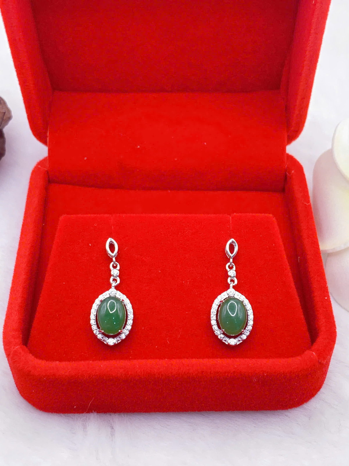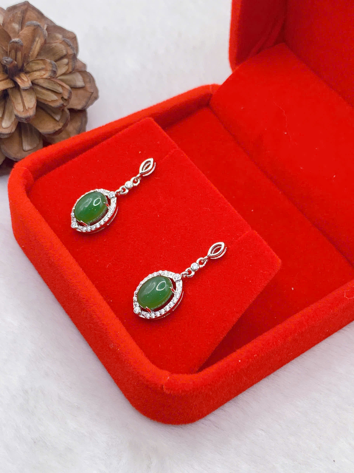Hoa Tai Ngọc Bích 4*8mm Bạc 925 - NE12011
