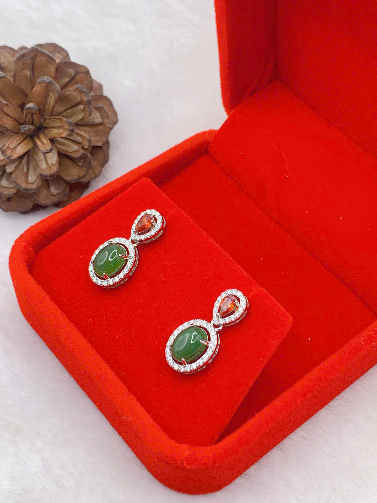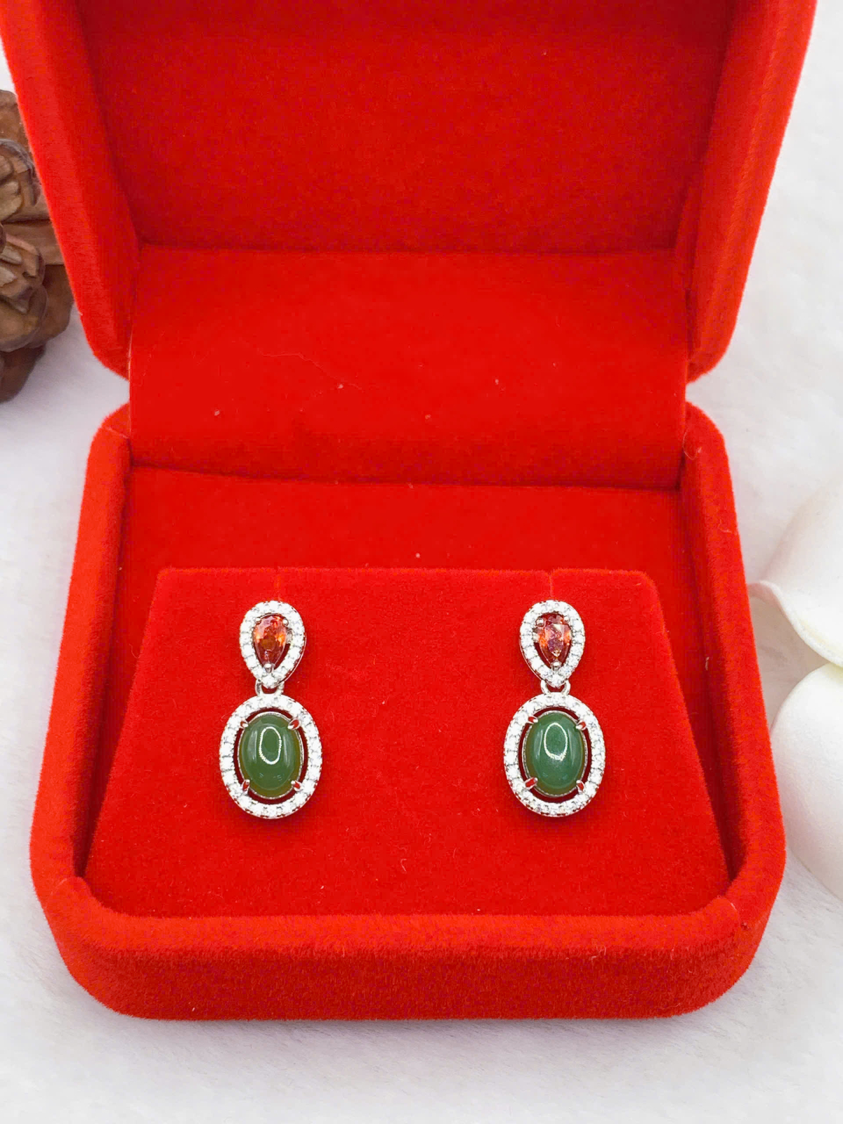 - Loại trang sức: Hoa tai bạc 925 gắn ngọc Bích