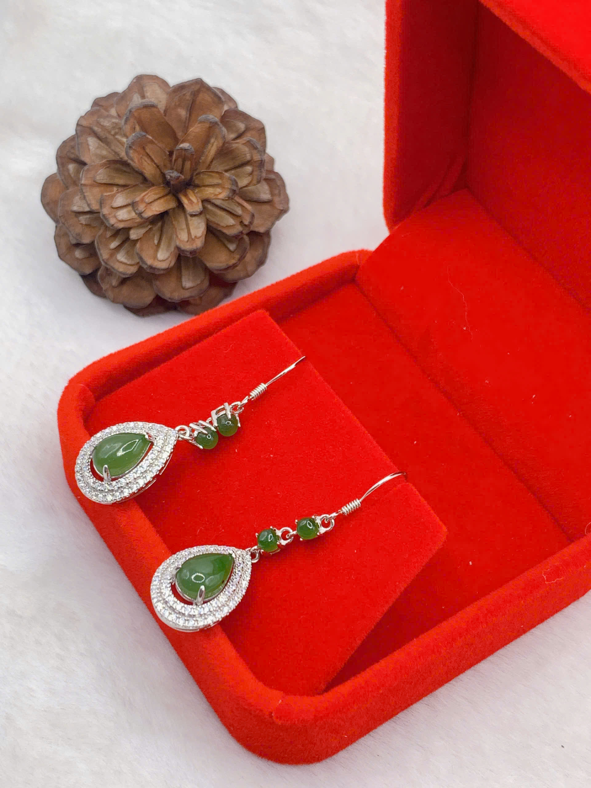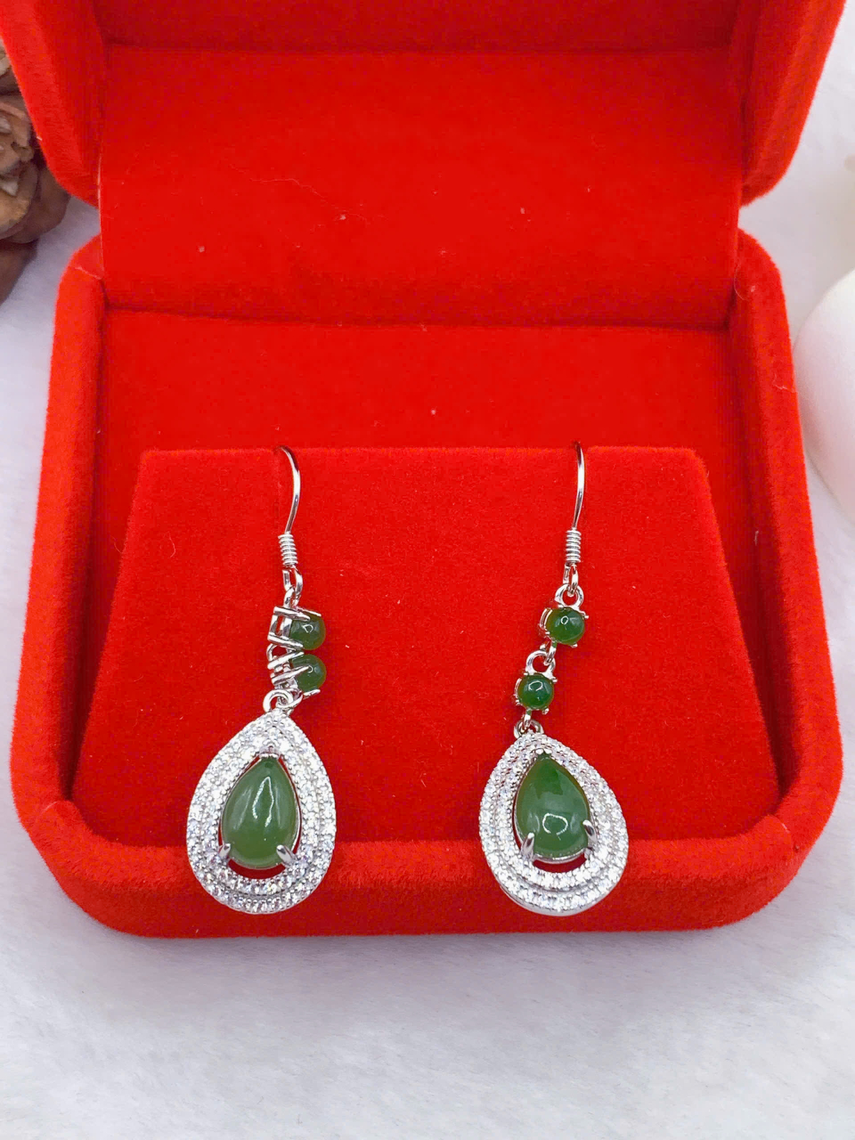 - Loại trang sức: Hoa tai bạc 925 gắn ngọc Bích