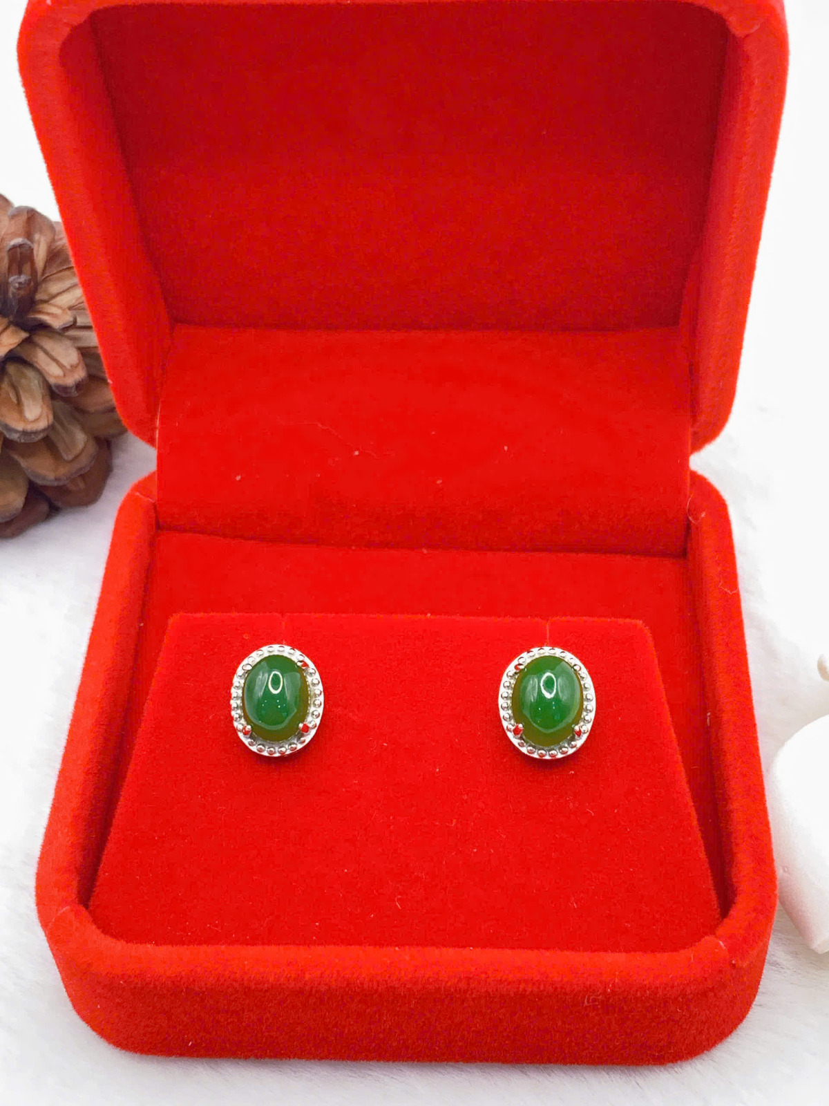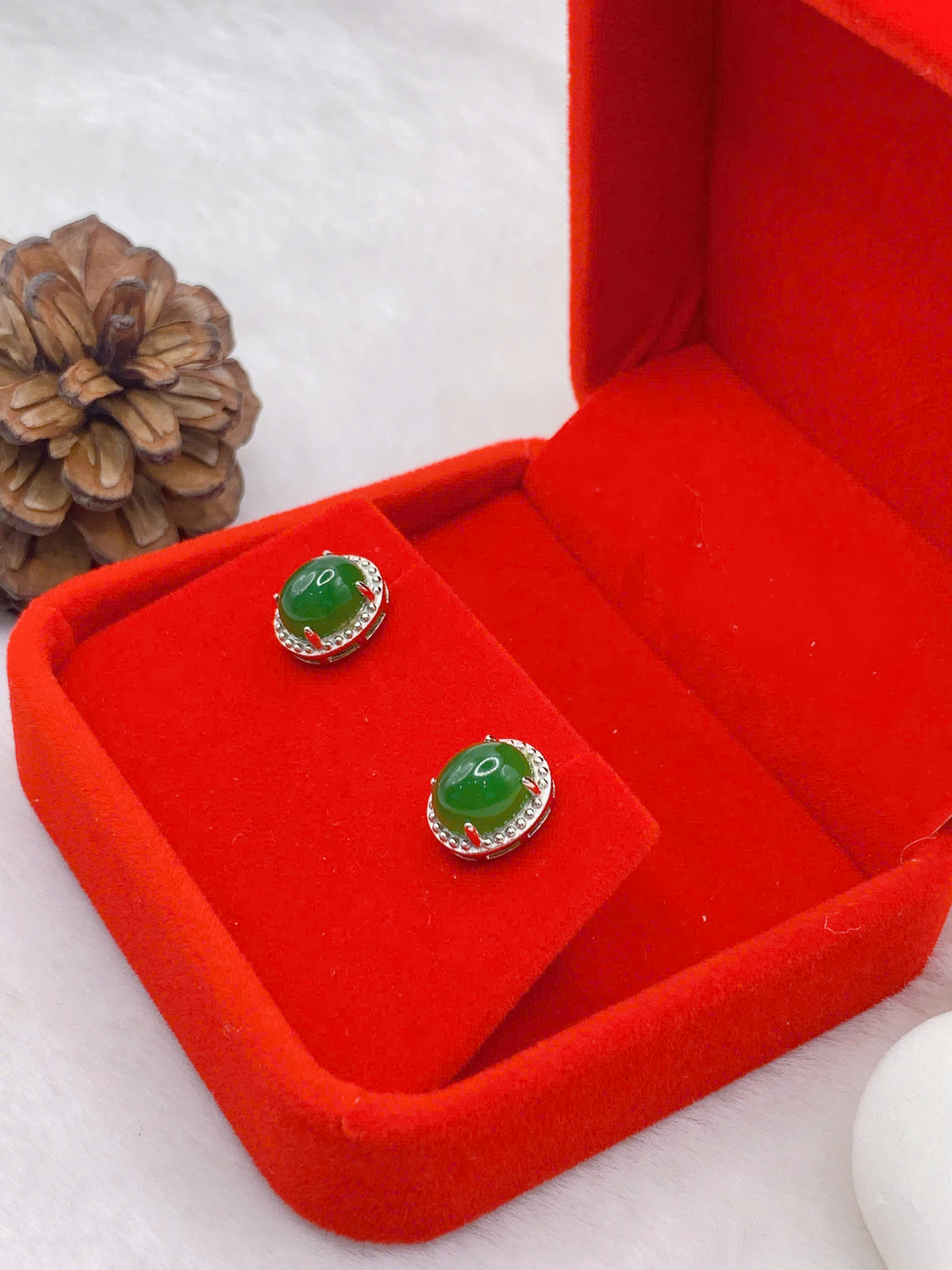 Hoa Tai Ngọc Bích 7*9mm Bạc 925 - NE12161