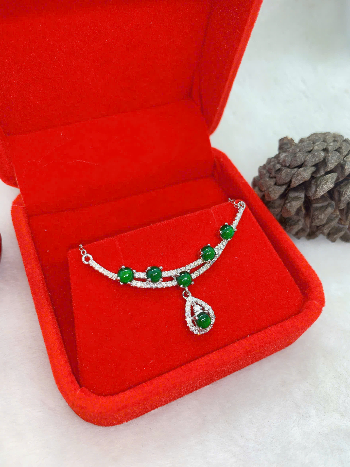 - Chất liệu: Ngọc Bích tự nhiên 100%, bạc 925