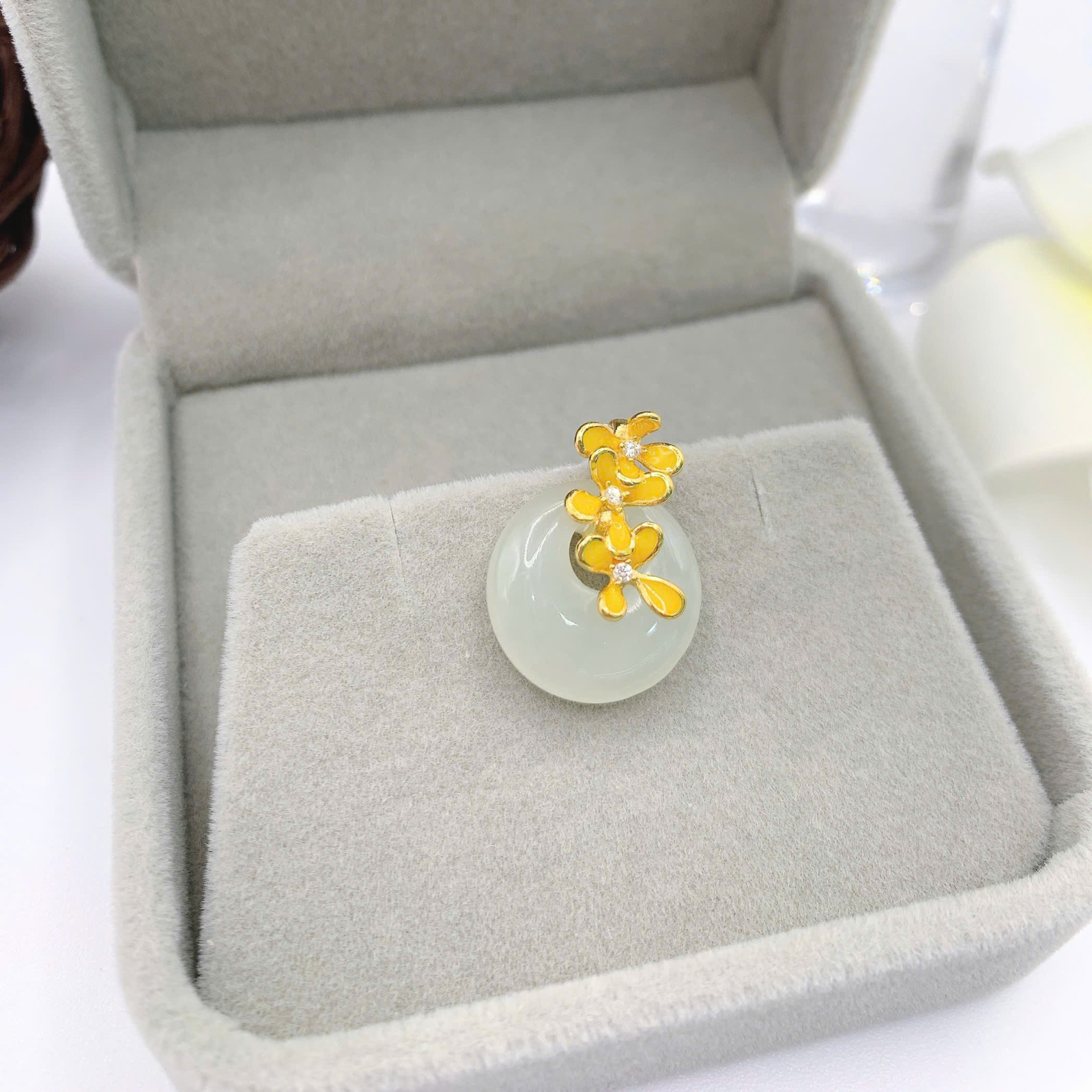 Mặt dây chuyền Bạch Ngọc 15mm bạc 925-EW3176-2