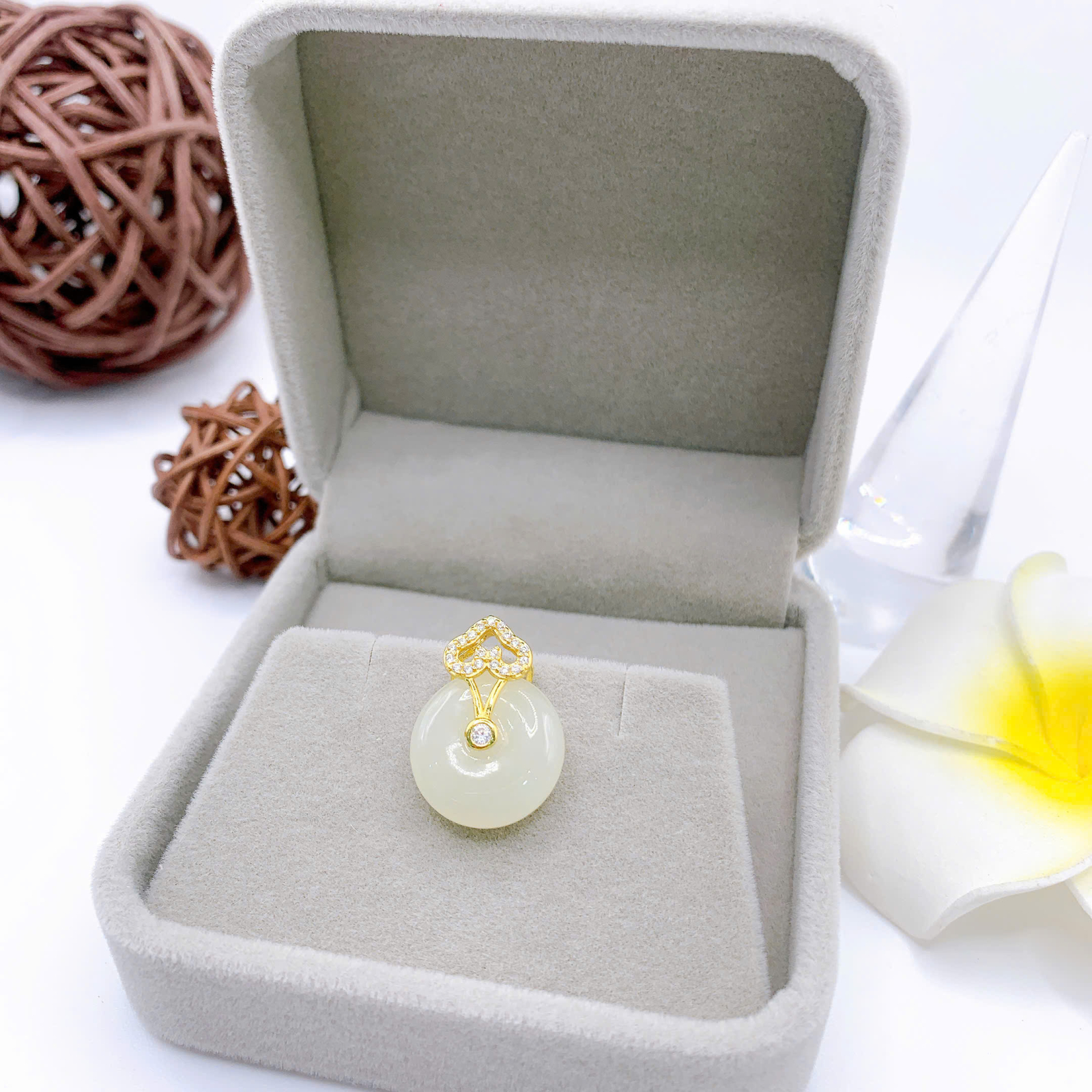 Mặt dây chuyền Bạch Ngọc 15mm bạc 925-EW3336-2