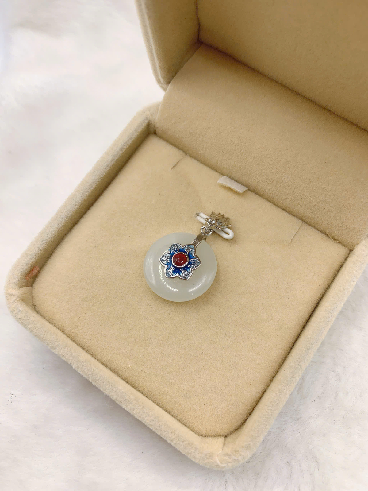 - Loại trang sức: Mặt dây chuyền bạc 925 gắn Bạch Ngọc