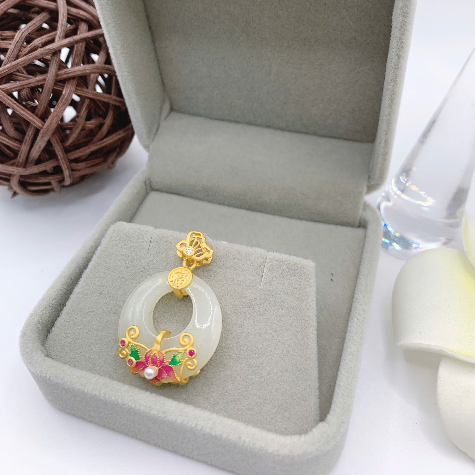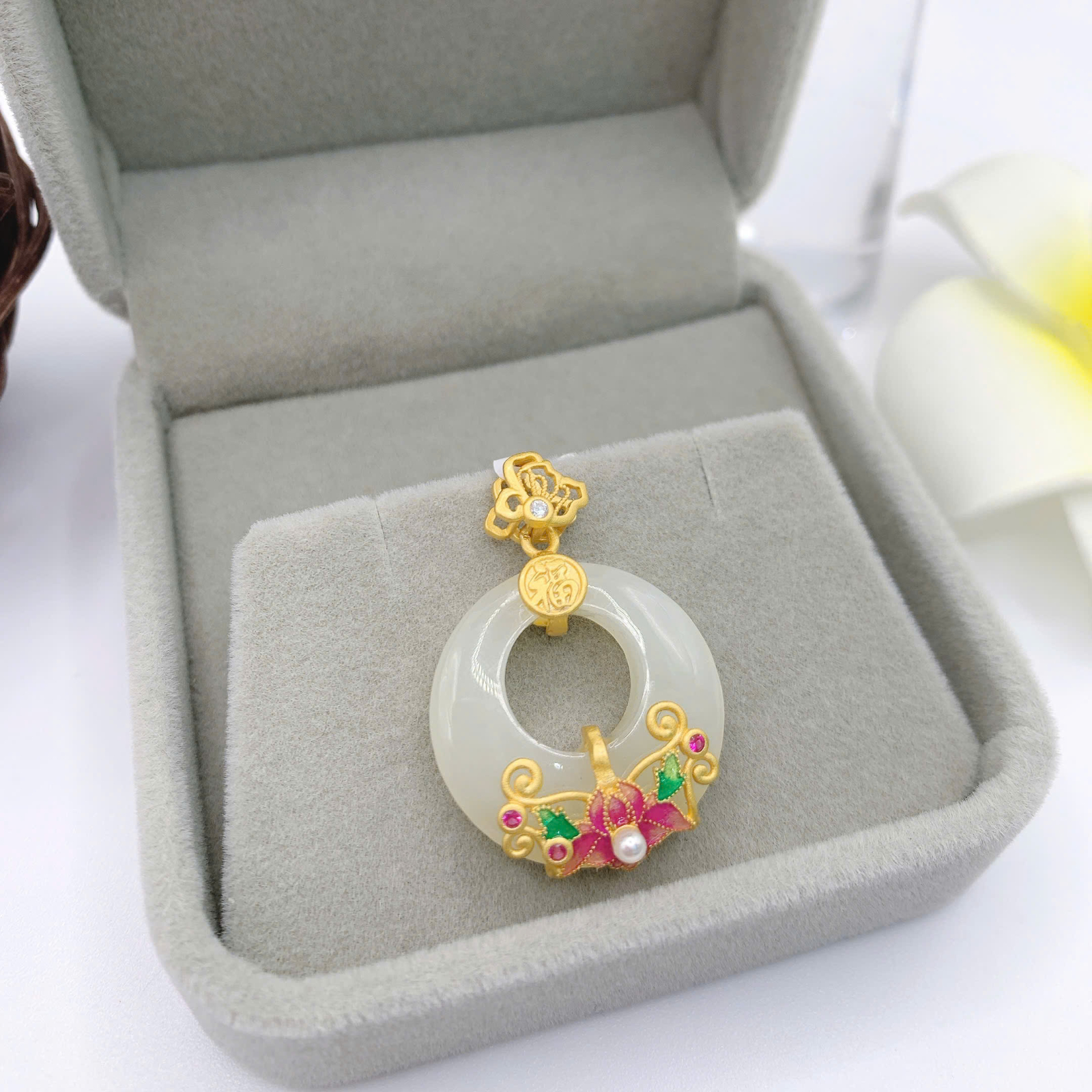 - Chất liệu: Bạch Ngọc tự nhiên, bạc 925 mạ vàng