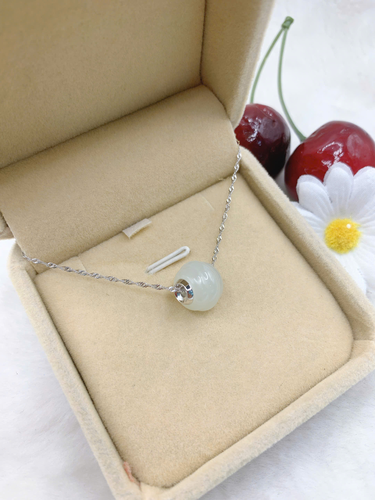 Mặt dây chuyền Bạch Ngọc 8mm bạc 925-EW40812